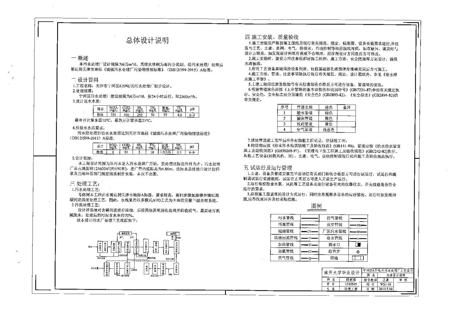 成果简介:在2015级环境科学与工程学院本科毕业论文(设计)中,顾朝海同学的毕业设计“天津市宁河区6万吨/天污水处理厂工艺设计”针对实际问题展开,设计过程认真严谨,选取的工艺先进适用,在设计过程中充分考虑了实际情况和设计规范,共绘制了相关工艺图纸14张,在答辩中以排名第一申报校级优秀设计。