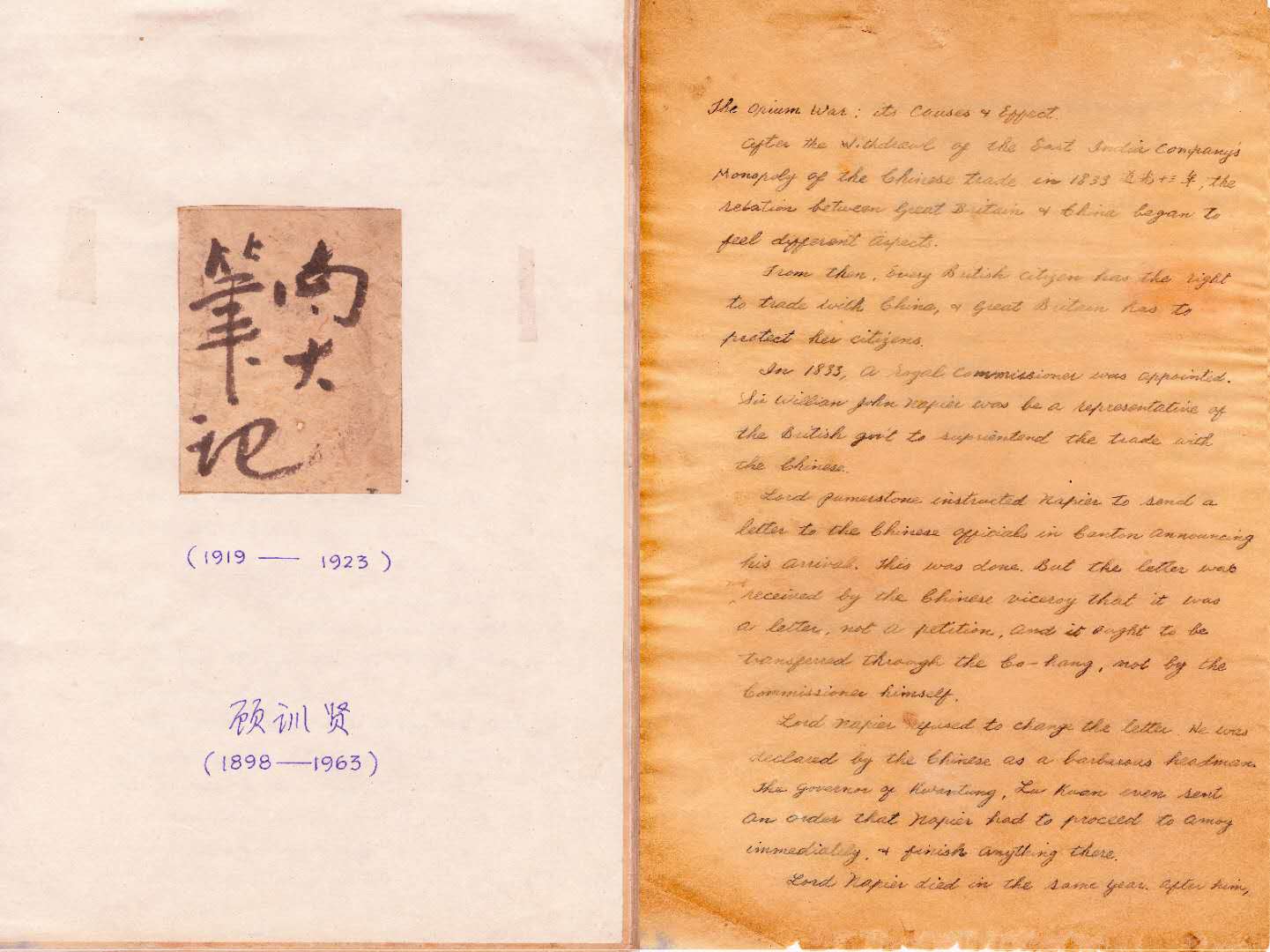 成果简介:南开大学建校后的首批学生(1919年-1923年)顾训贤笔记