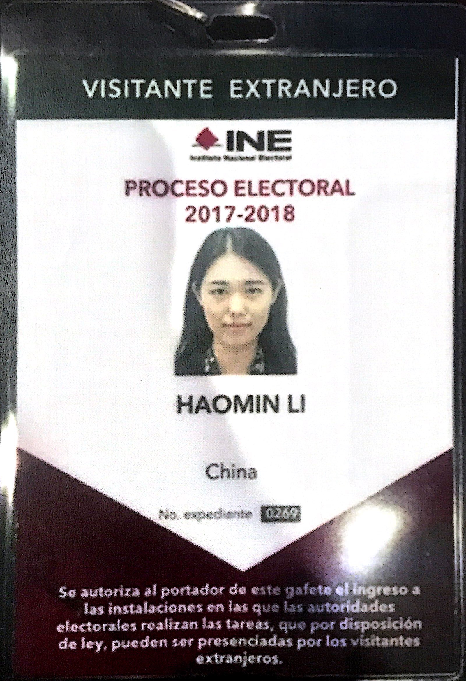 成果类型:证书类 成果简介:物品是墨西哥大选国际观察员证,很荣幸成为了2018年墨西哥大选国际观察员之一,参与了大选的全过程,这是我在墨西哥留学期间一段宝贵的经历。 所属人简介:大选国际观察员;参与2018年墨西哥大选