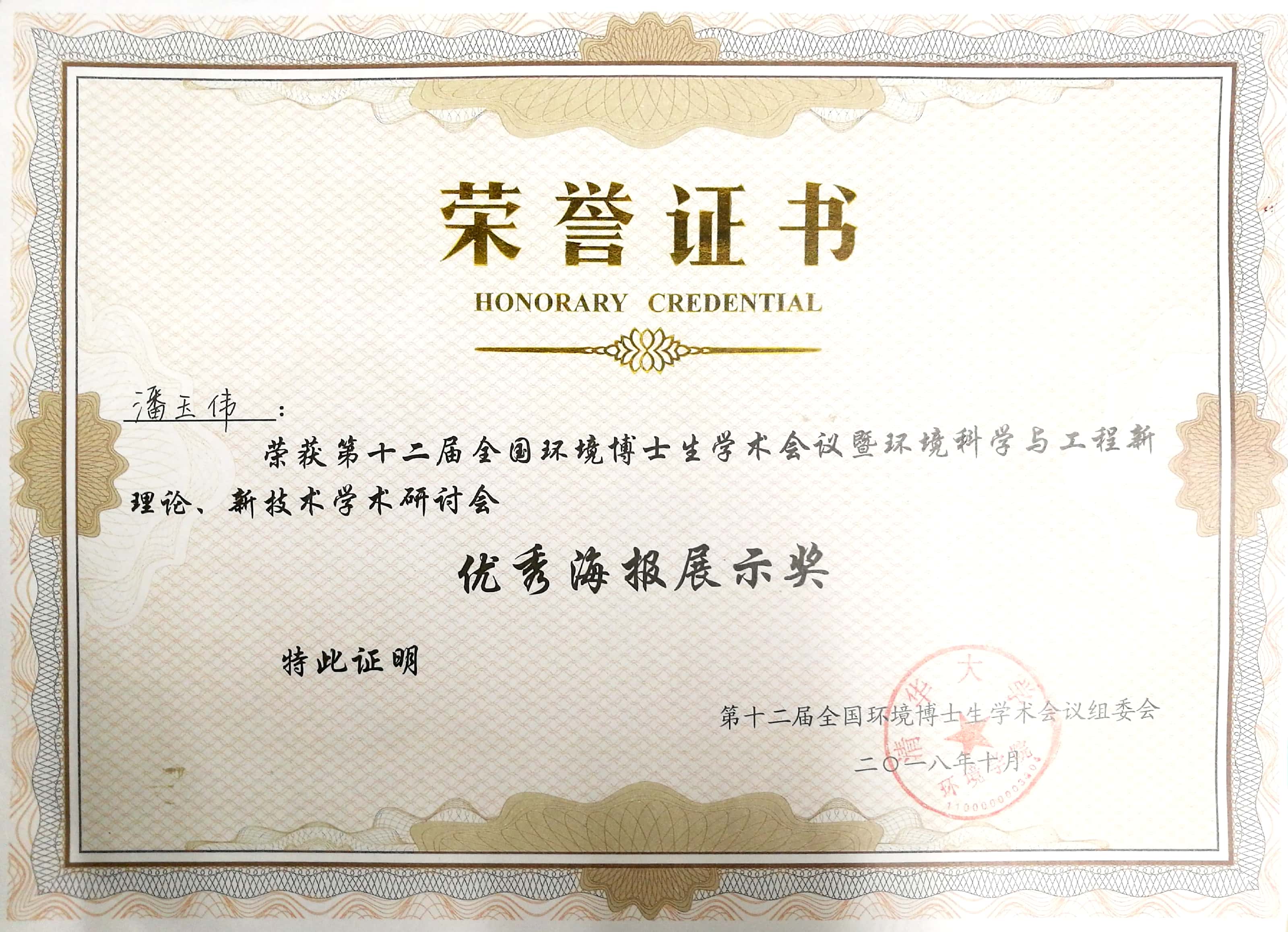成果类型:证书类 成果简介:潘玉伟同学目前发表SCI论文16篇,其中以第一作者发表SCI论文9篇,其中一区论文7篇,2区2篇,累积影响因子达到55.315;同时也以学生一作的身份申请了两项发明性专利。