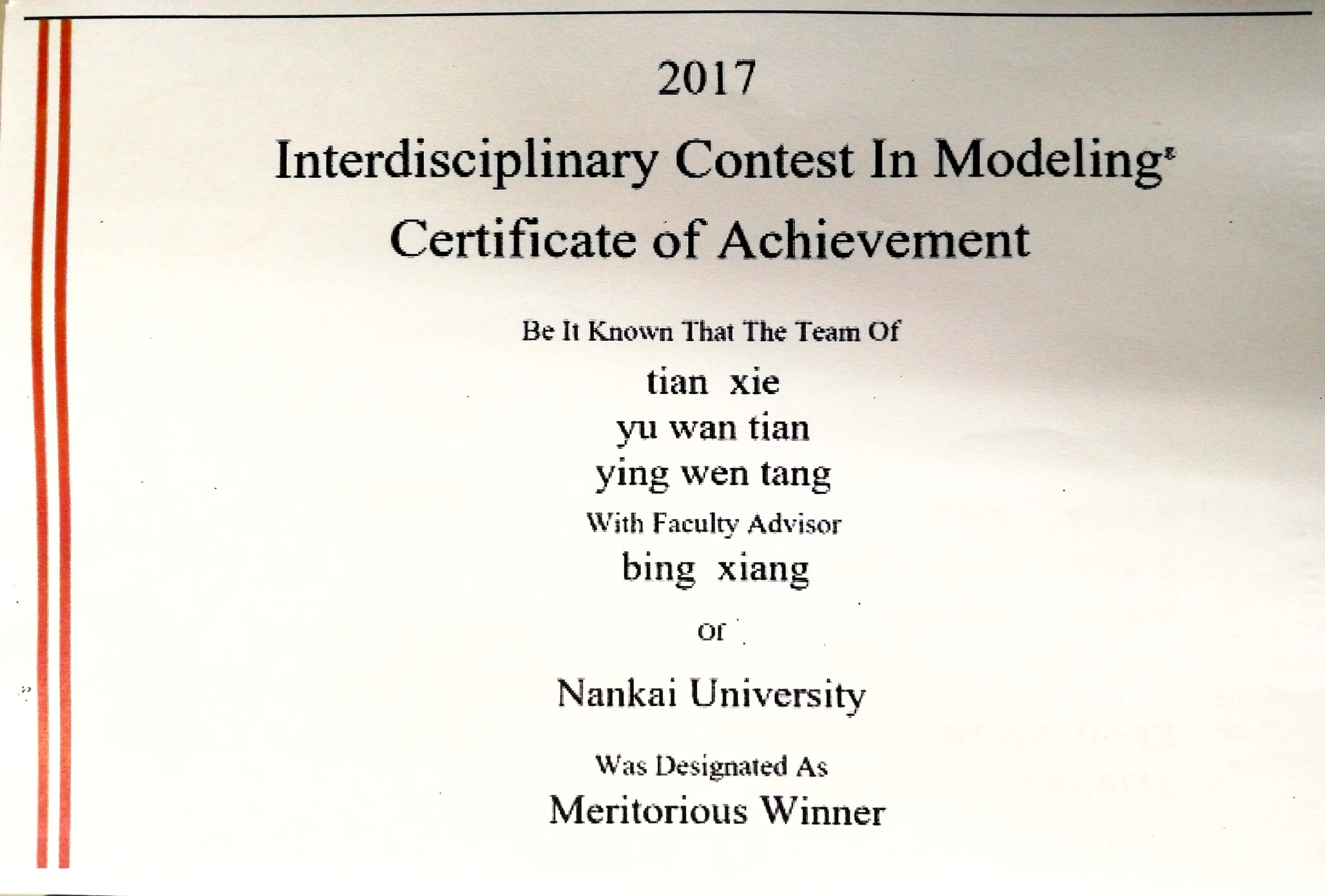 所属人简介:南开大学优秀学生干部,南开大学三好学生;连续三年获得奖学金,专业成绩名列前茅。