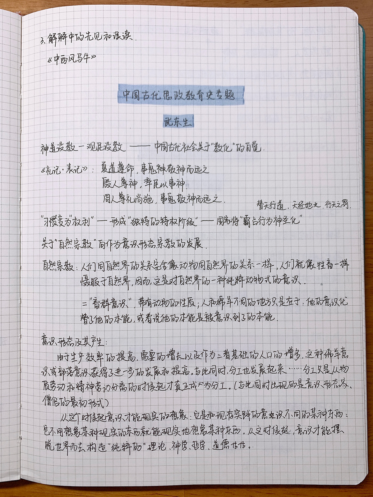 成果简介:该笔记为贾若文同学的《中国古代思想政治教育史专题研究》课程笔记,知识脉络清晰、字迹工整。