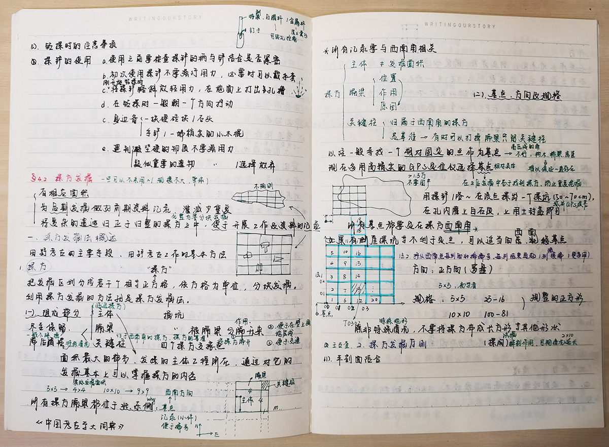 成果简介:该笔记为王碧杨同学《田野考古通论》课程笔记,具有字迹整齐,知识结构清晰等特点。这之后该生参与了两次田野发掘,对课程的知识进行了实践。