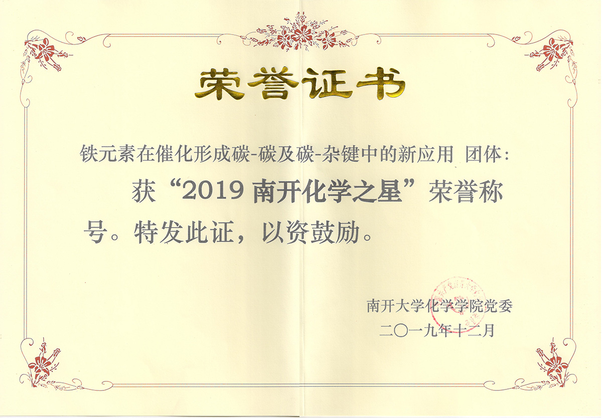【2019南开化学之星奖状】