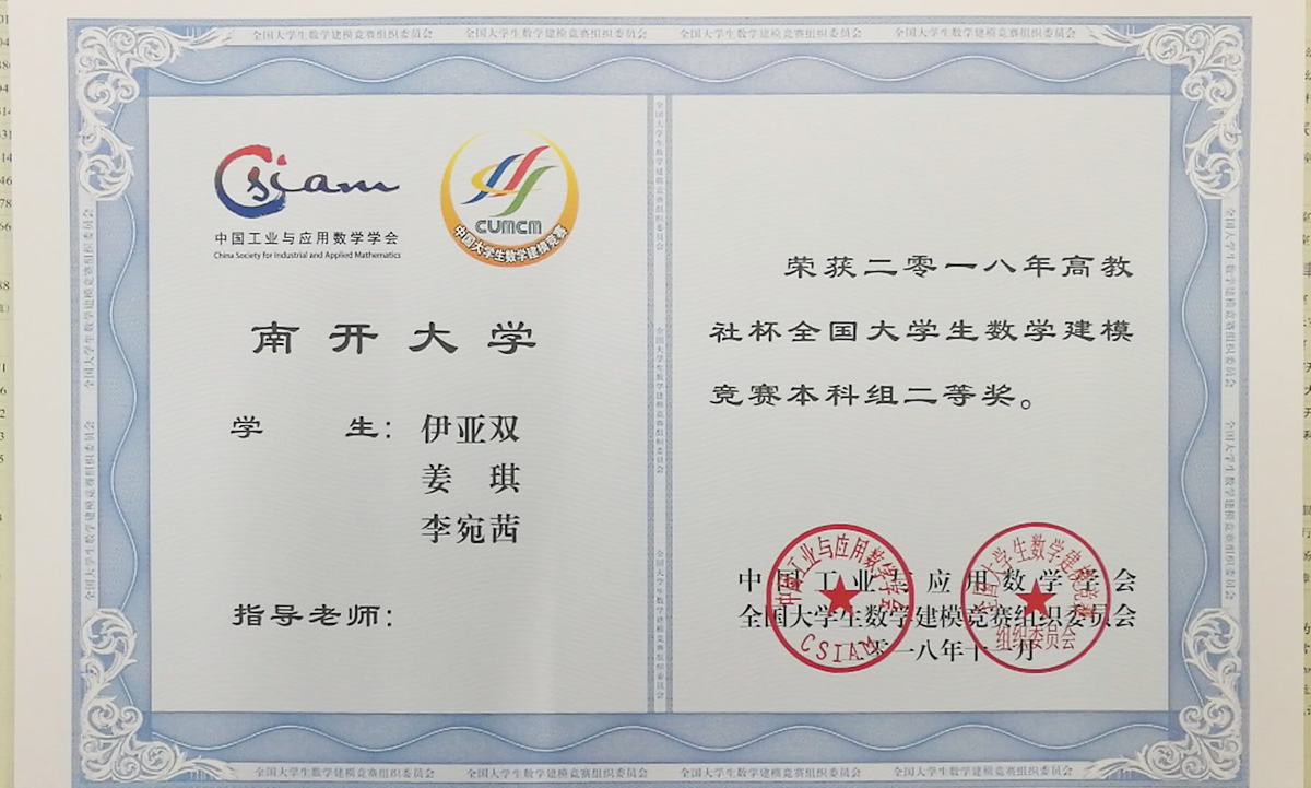 【全国大学生数学建模竞赛全国二等奖证书】