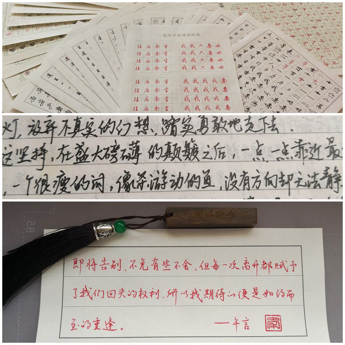 成果类型:居家防疫笔记展 成果简介:居家期间,每日坚持练字打卡沉淀身心已百日有余。练字期间也曾想过放弃,毕竟这种爱好有些独善其身的感觉,但我还是想突破一下自我,最终咬牙坚持下来!百日后惊奇地发现与最初的书写相比步明显。当所有努力都不被辜负的时候,才是最有成就感的吧, keep going